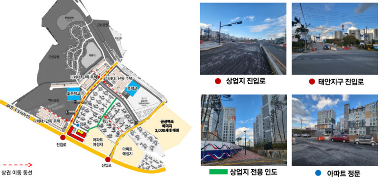 태안 3지구 유일 상업지구는 도로 및 주거지에서의 이동동선이 매우 용이함