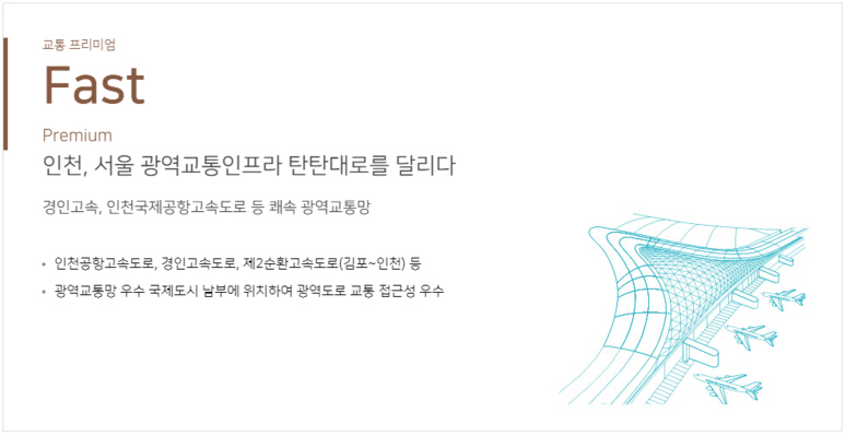 서울 강남 1시간대, 인천공항 20분대, 가산디지털단지 30분대 향후 교통 프리미엄 예상