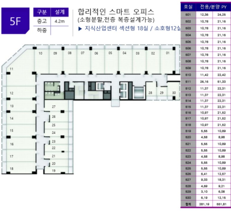 지식산업센터 드라이브인, 소호, 섹션 공급(다양한 평형대 최대효율 평형)