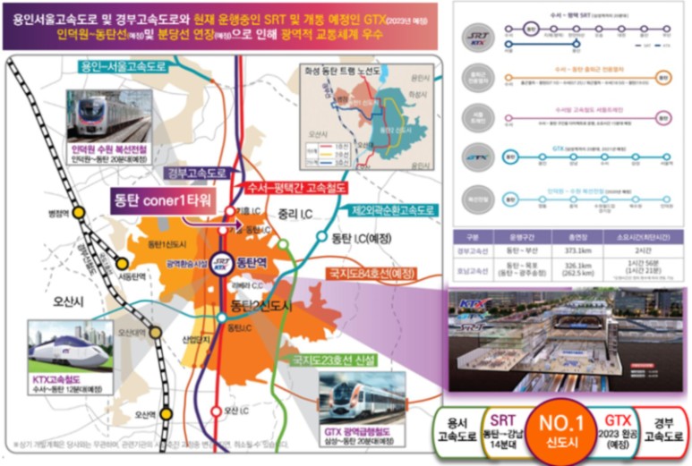 수도권 이남 최고의 교통 접근성 문화,호텔,컨벤션,영화관,백화점,업무시설이 동탄역을 둘러싸고 있는 수도권 중추 지역