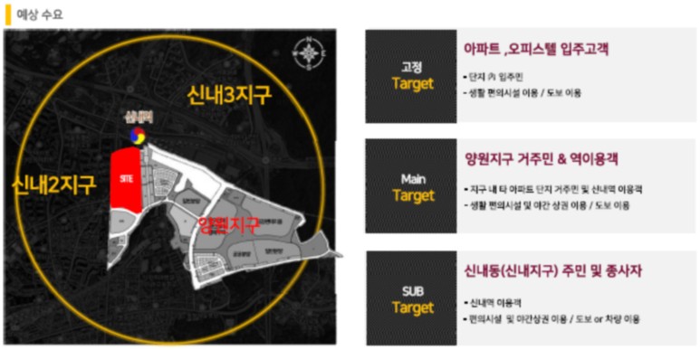 고정수요 1,438세대, 인근 주거단지 거주민 약 1.5만세대, 신내역 이용까지 모이는 광장