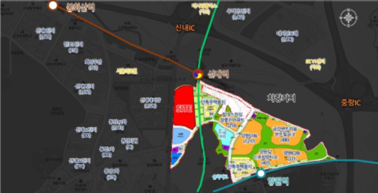 서측으로 약 1만여세대의 신내 주거단지와 3천여세대의 양원지구 배후수요를 보유한 입지