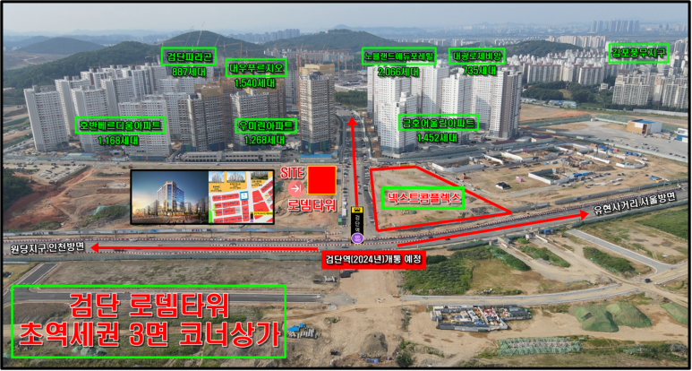검단 중심상업지 역세권 대로변 3면 코너 최고입지!