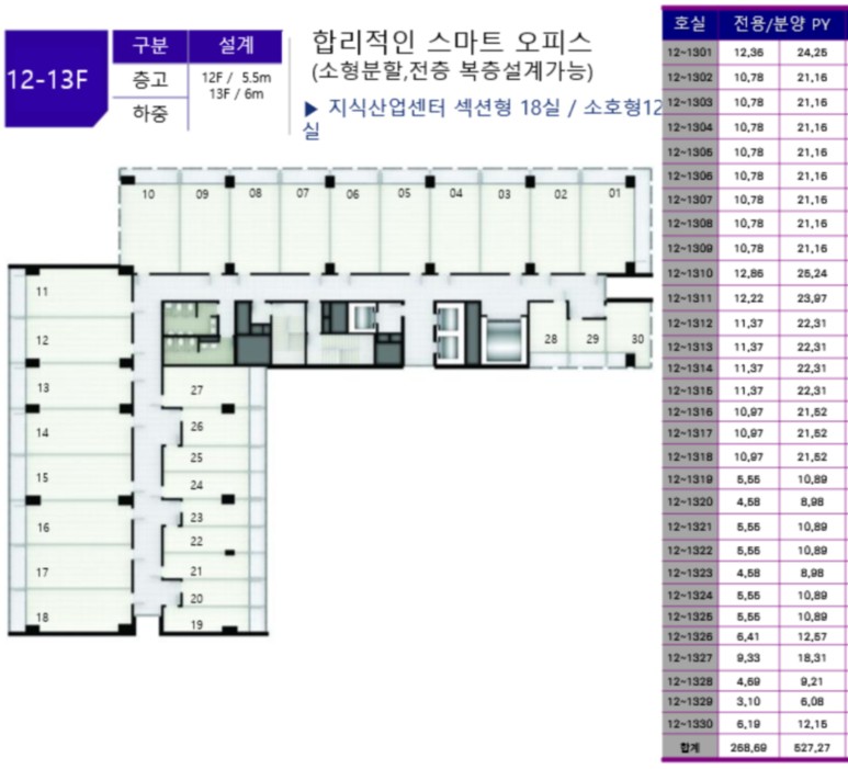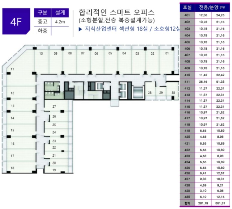 지식산업센터 드라이브인, 소호, 섹션 공급(다양한 평형대 최대효율 평형)