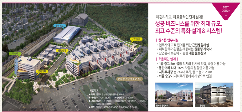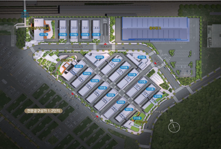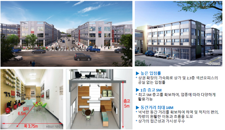 상가운영, 물류소통, 업무지원 시설의 복합 시스템구축 공구유통상가, 근린상가, 기숙사, 물류창고를 동시에 갖춰 업무의 편의와 비즈니스의 경쟁력을 더 높입니다.