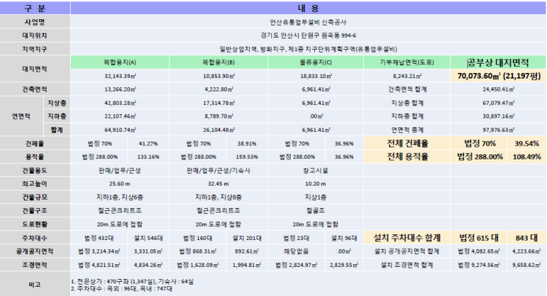 3단지 21개동 총 전문상가 470구좌 1,347실, 기숙사 64실 규모