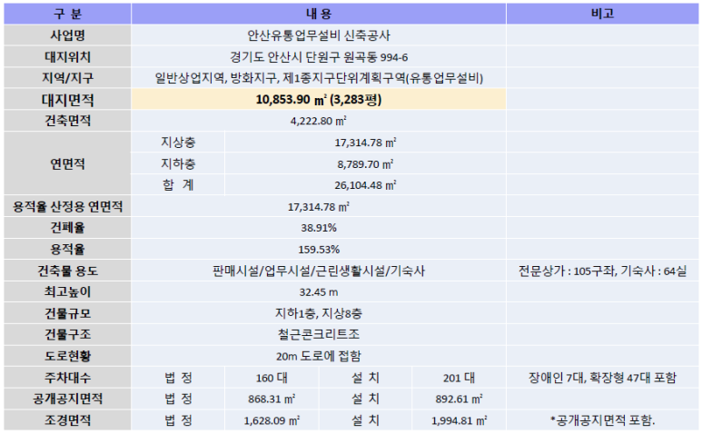 약 21,200 평규모. 일반 상업용지 . 법정 건폐율 70% 보다 적은 40%, 법정 용적율 288% 보다 적은 108% => 대지 지분율 최고