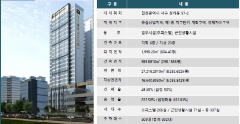 청라 큐브 시그니처 1015는 시티타워와 커낼웨이 바로 옆에 위치했으며 지하 6층~지상 23층 규모에 A동 335실, B동 337실, C동 337실 등 총 3개동의 매머드급 대단지로 이뤄진 오피스텔단지 입니다.