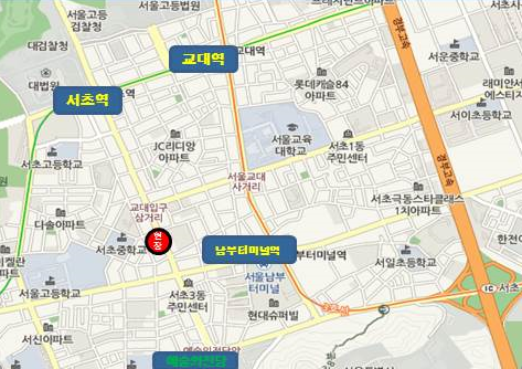 지하철 2호선 서초역 및 3호선 남부터미널역 인접, 반포대로, 테헤란로, 서리풀터널(예정) 등 이용 편리