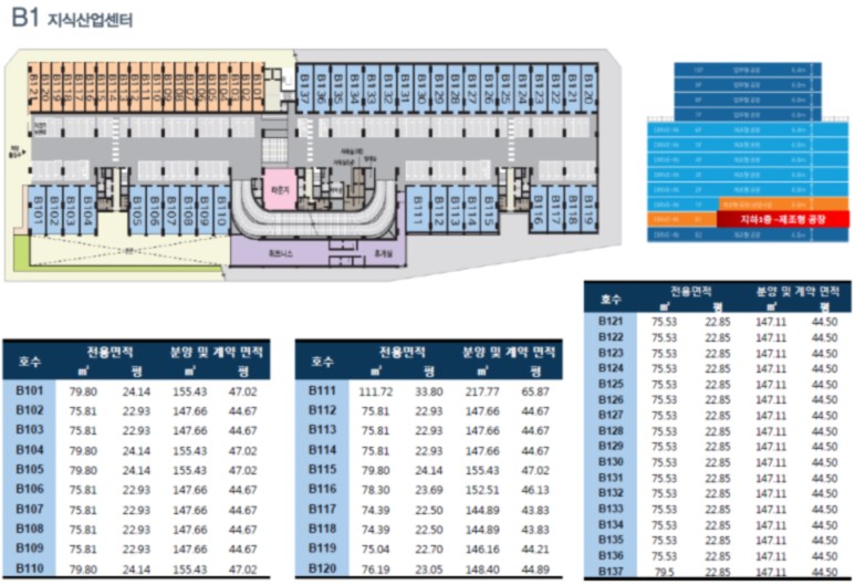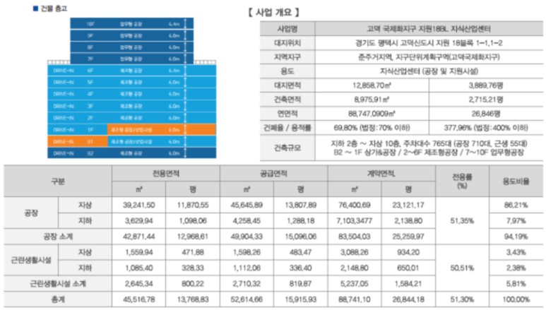 근린 생활 시설 및 제조형 공장, 업무용 공장으로 구성