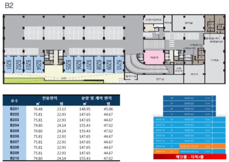 근린 생활 시설 지하1층~지상1층 전부 지상 노출로 실질적인 1층 상가 구성