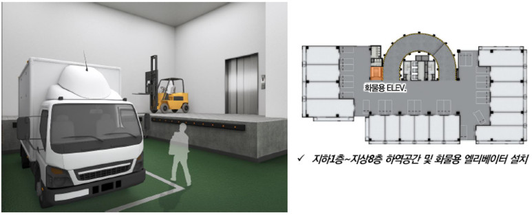 지하 1층 ~ 지상8층 화물용 엘리베이터 설치