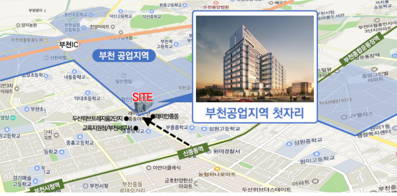 부천 공업지역의 첫 자리 위치한 신중동 더퍼스트 지식산업센터