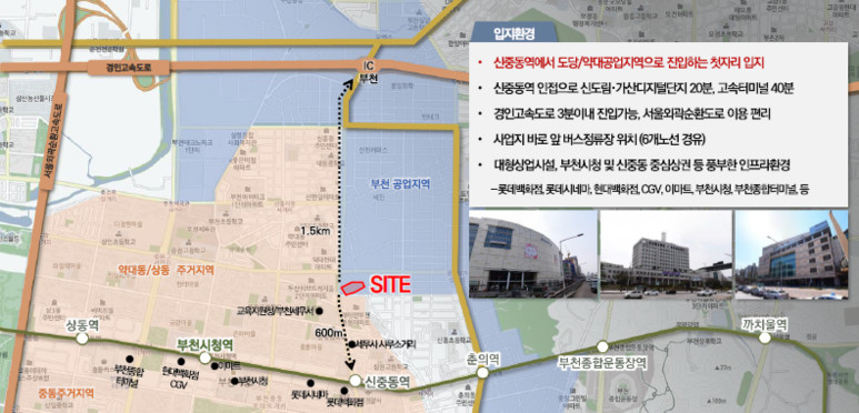 신중동역 바로 앞, 경인 고속 부천 IC까지 단번에 진입하는 입지환경