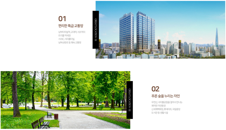 남부순환로, 경부고속도로의 이용이 용이하며, 효령로, 서초중앙로를 이용 강남권 생활이 편리한 지역입니다.