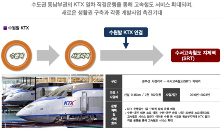 수도권고속철도(SRT)가 개통 (사업지와 4km 이격) 되어 강남 수서까지 약 20분내로 이동이 가능하며, 향후 인천 및 경기 동남부권의 광역 접근성이 우수해질 것으로 전망