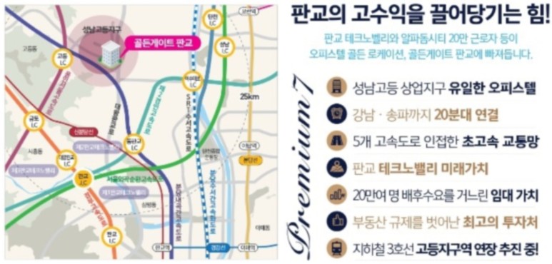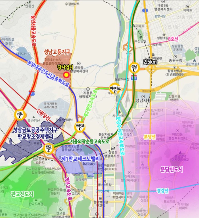 - 당 사업지가 위치한 고등지구는 양재, 세곡, 내곡, 위례, 성남 (판교 ·분당) 지역의 사이에 위치하며 판교 창조 경제 밸리와 연계 , 제2의 판교라고 불림