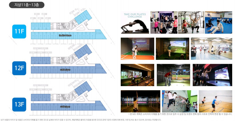 실내 스크린 테마파크 및 운동시설, 체력 단련 시설 등 운동 업종 입점 가능