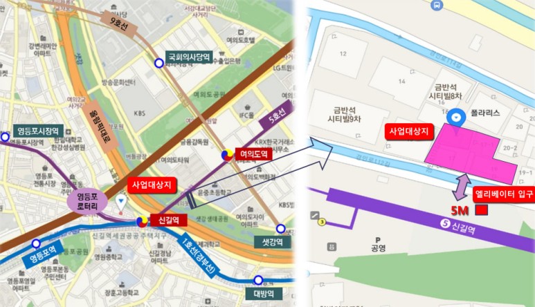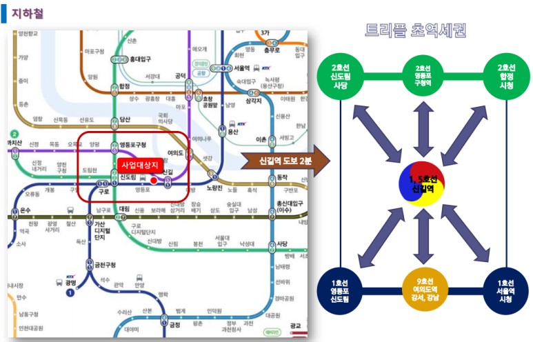 당 사업지에서 도보 2분거리에 지하철 1호선, 5호선 신길역이 위치하고 있으며