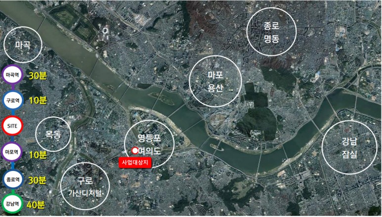 당 사업지는 서남부권 중심입지로 서울 주요 업무 권역 40분내로 진입 가능