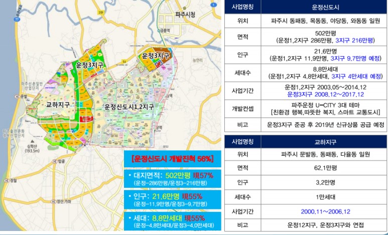 운정1,2지구, 교하지구 조성 및 공급완료