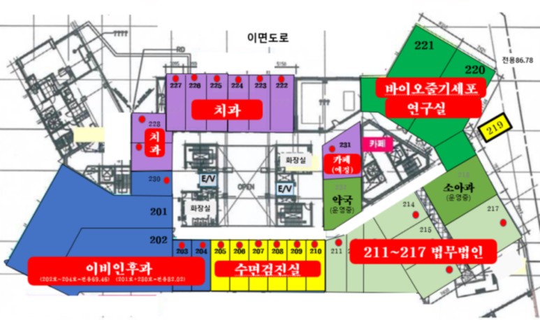 메디컬센터 (임대5년확정) 등으로 선임대 되어 있는 상가입니다.