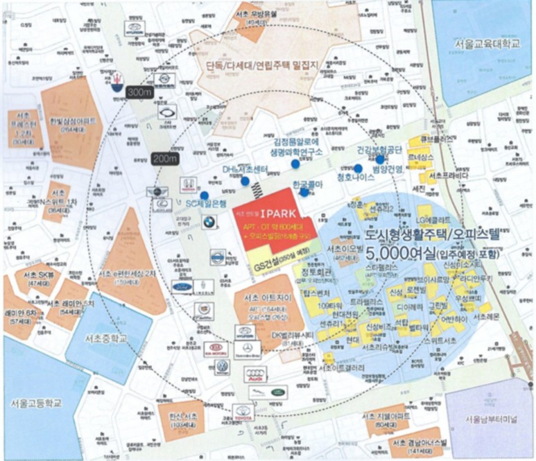 주변 신축아파트 및 오피스텔 500만 가구, 인근 7만여 세대와 최고급 빌라촌 인접, 인근 역세권 평일인구 약 10만명의 유동인구 흡수력