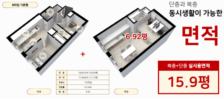 원룸과 일반 복층의 단점을 보완한 더블 복층 아파텔