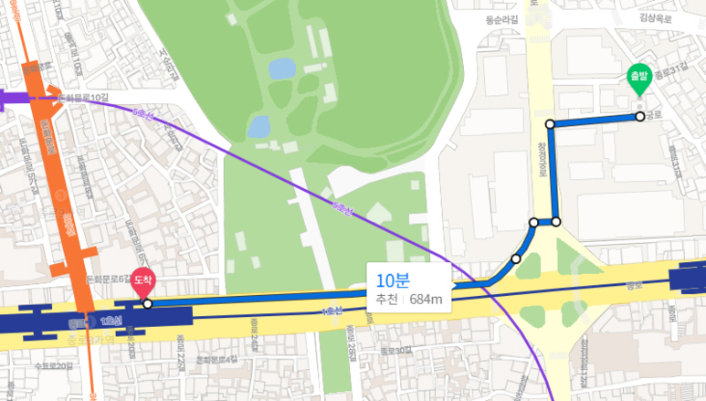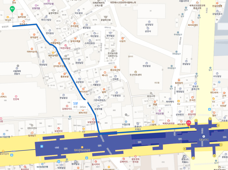 지하철 1호선 종로 5가역 5분거리 (약 340m)