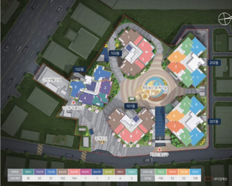단지 입구부터 놀이터, 산책로, 외관의 컬러까지 세심하게 디자인된 단지에서 더 행복한 일상이 시작됩니다.