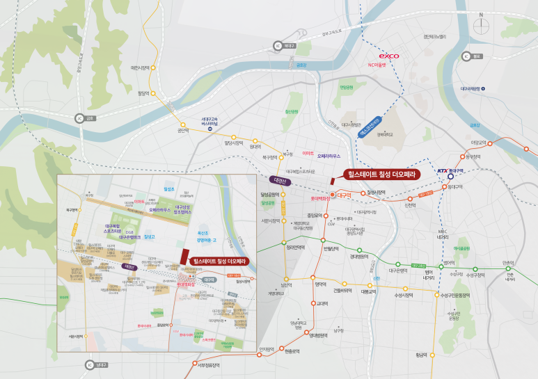‘힐스테이트 칠성 더오페라’는 중구와 북구의 생활권을 동시에 누릴 수 있는 입지로, 대구 내 주거 선호도 높은 중심부에 위치하고 있습니다. 특히 이미 입주한 인근 힐스테이트 단지들과 함께 브랜드 타운 형성 효과가 기대되며, 향후 자산가치 상승의 기반이 될 수 있습니다.