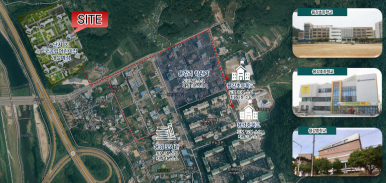 교육동선형 제안: 단지 내 어린이집과 인근 초·중학교 연계로 안전한 통학이 가능한 교육형 생활 동선
