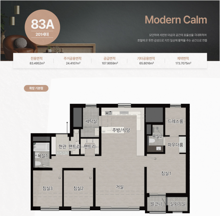 전체 타입은 Modern Calm과 Modern Heritage 콘셉트로 디자인되어 있습니다.